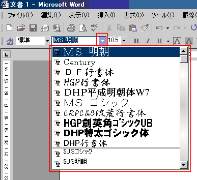 - フォント ボックスのドロップダウンリストにフォント名が同じフォントで表示され分かりやすくなりましたが、表示に時間がかかります。