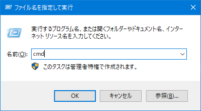 1. Windowsキー + R を押す。 2. cmd と入力して OK をクリックする。