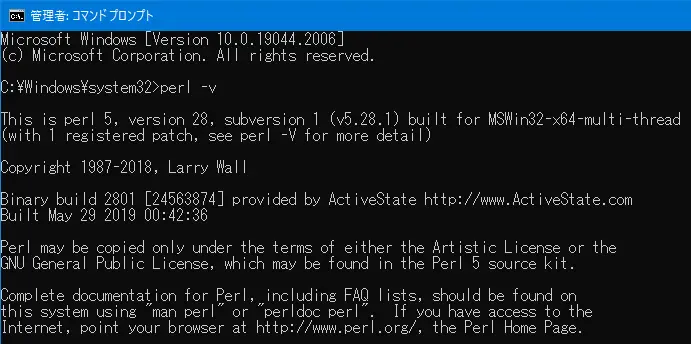 1. 事前に c:\usr フォルダを作成する。 2. ActivePerl-5.26.3.2603-MSWin32-x64.exe をクリックする。 3. Next をクリックする。4. I accept the terms i the License Agreement にチェックして Next をクリックする。
