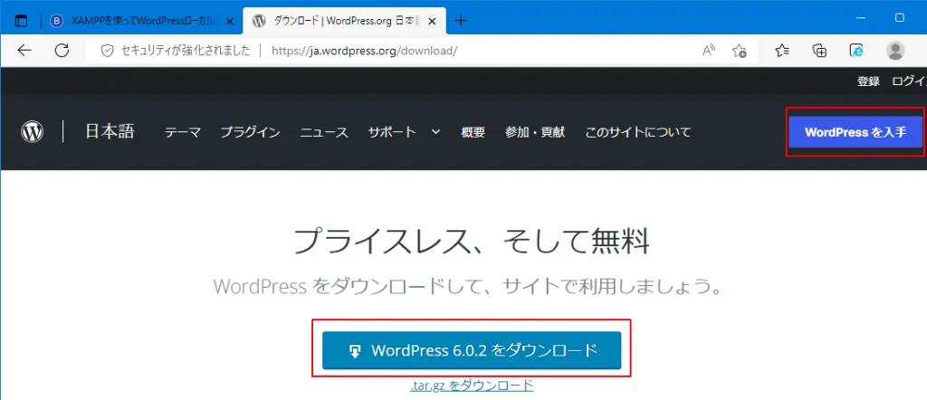 "Windows 向け XAMPP" のボタンをクリックすると、ダウンロードできます。