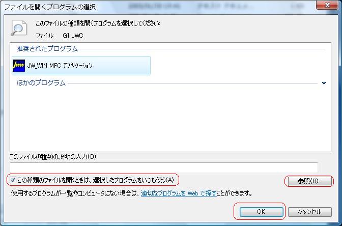 □この種類のファイルを開くときは、選択したプログラムをいつも使う(A)にチェックを入れる。